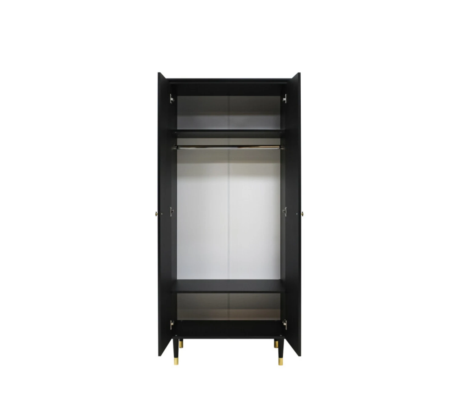 Deze mooie 2-deurskast Cloë van Bopita is een echte eyecatcher in de babykamer. De kast is uitgevoerd in een combinatie van mat zwart met gouden accenten. Hierdoor krijgt de kast een warme luxe uitstraling. Het interieur bestaat uit een hangroede en verschillende legplanken, waarvan de meeste in hoogte verstelbaar zijn. Zo kun je de kast dus helemaal naar je eigen wens en smaak inrichten. Combineer de 2-deurskast met de andere meubelen uit de serie Cloë.