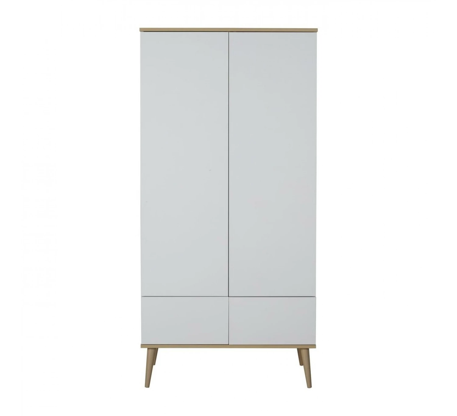 De 2-deurskast Flow van het merk Quax is ideaal voor in de babykamer. Deze ruime designkast biedt veel opbergruimte. Naast de vele ruimte achter de twee deuren beschikt de kast ook nog over twee lades om kleding of spullen in op de kunnen bergen. De kast wordt geleverd met met drie legplanken en een kledingroede. De kast is uitgevoerd met de kenmerkende ranke pootjes die de kast een mooie uitstraling geven. De kast is gemaakt van MFC en beukenhout. De kast is in verschillende kleuren verkrijgbaar. Combineer de kast met de andere meubelen uit de Flow collectie.
