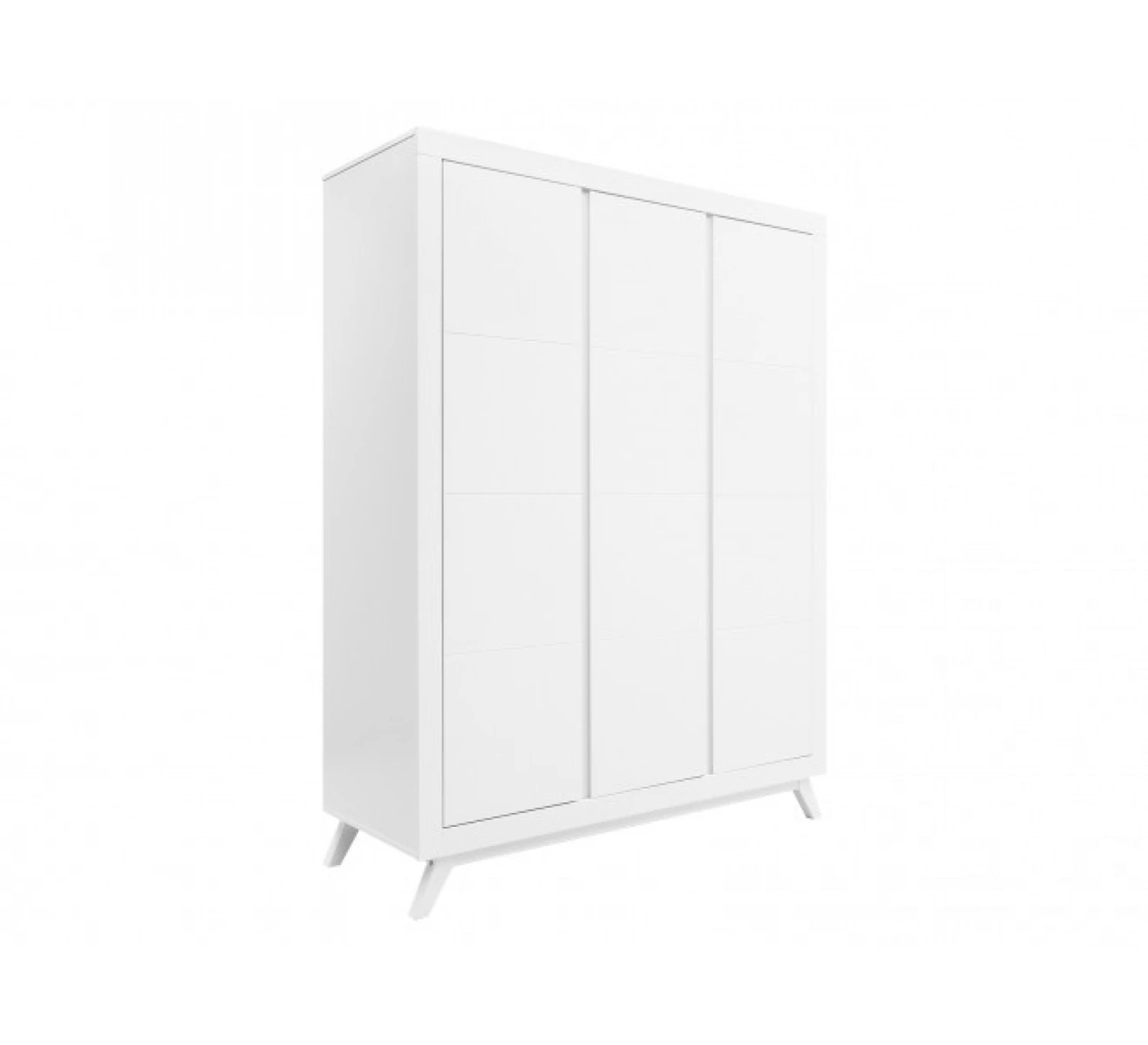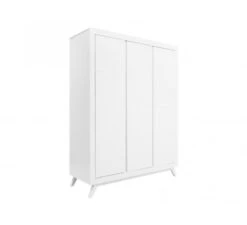 In deze royaal bemeten 3-deurskast Anne heb je voldoende ruimte om al jouw spullen in op te bergen. Het interieur bestaat uit drie vaste planken, drie in hoogte verstelbare hangroedes en zes in hoogte verstelbare legplanken. De serie Anne kenmerkt zich door de ranke schuine pootjes en greeploze deuren. De deuren zijn voorzien van subtiele horizontale groeven. De kast is afgewerkt met een dekkende witte lak op waterbasis en is kind- en milieuvriendelijk.