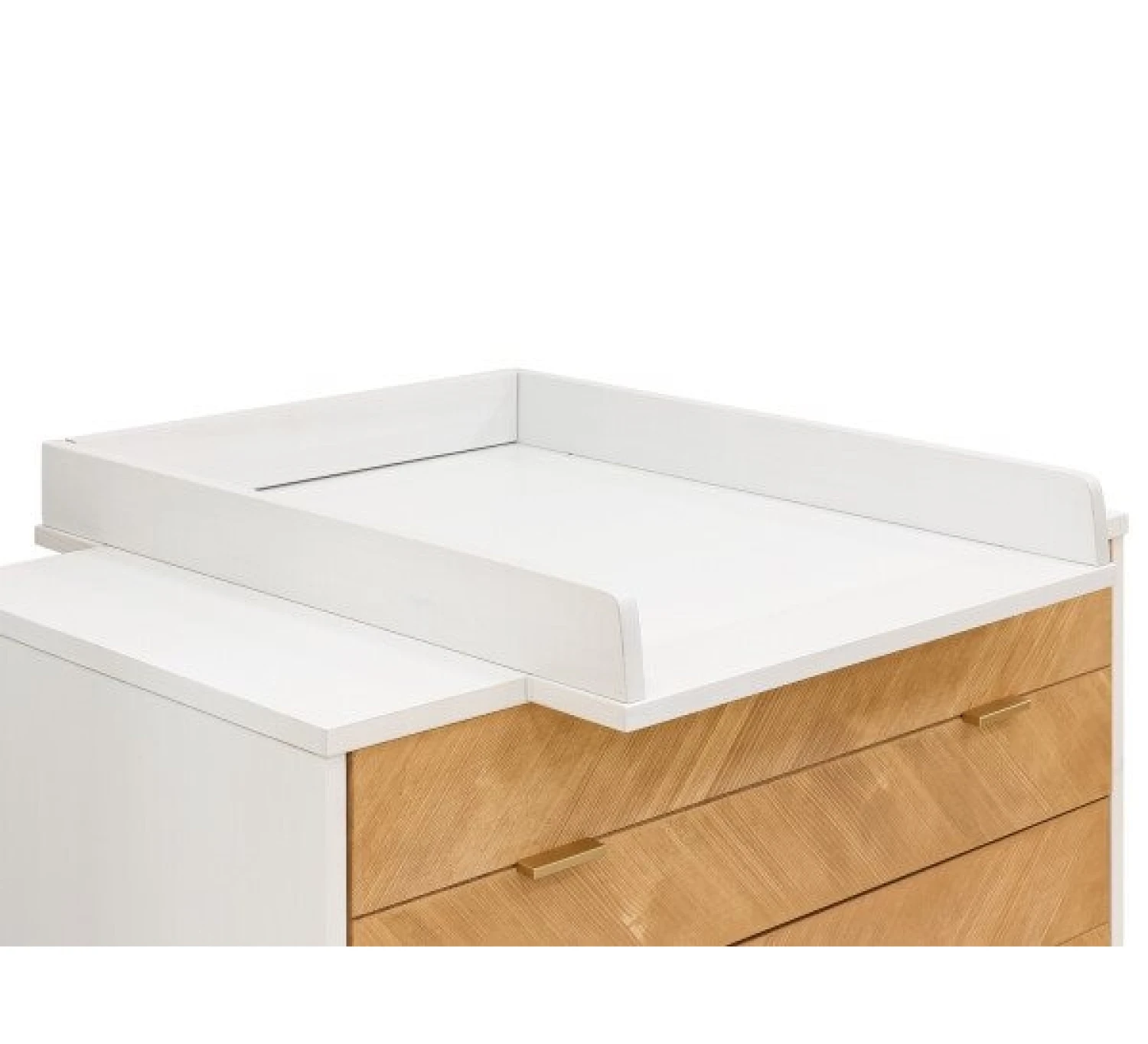 Onder andere geschikt voor commodes van de serie Isa. Een barrier, ook wel bladvergroter genoemd, op een commode zorgt ervoor dat jouw baby recht voor je ligt, wat het verschonen en aankleden een stuk makkelijker maakt omdat je zelf in een juiste ergonomische houding kunt staan. Bovendien houdt je oogcontact met je kleintje. Op de barrier plaats je een aankleedkussen met daar overheen een zachte hoes. Door de opstaande randen van de barrier kan het kussen niet verschuiven; extra veilig! Het opzetstuk wordt vastgemaakt aan de commode en kan later weer verwijderd worden als het kindje te groot is. Let op: een barrier steekt aan de voor- en achterkant van de commode iets uit, hierdoor komt het meubel circa 10-15 cm van de wand af te staan. Dit artikel is geschikt voor gebruik met een kind tot maximaal 15 kilo. Je kunt een aankleedkussen op de commode plaatsen met de korte zijde tegen de achterwand. De maximale afmetingen van het aankleedkussen zijn 52 x 72 cm.