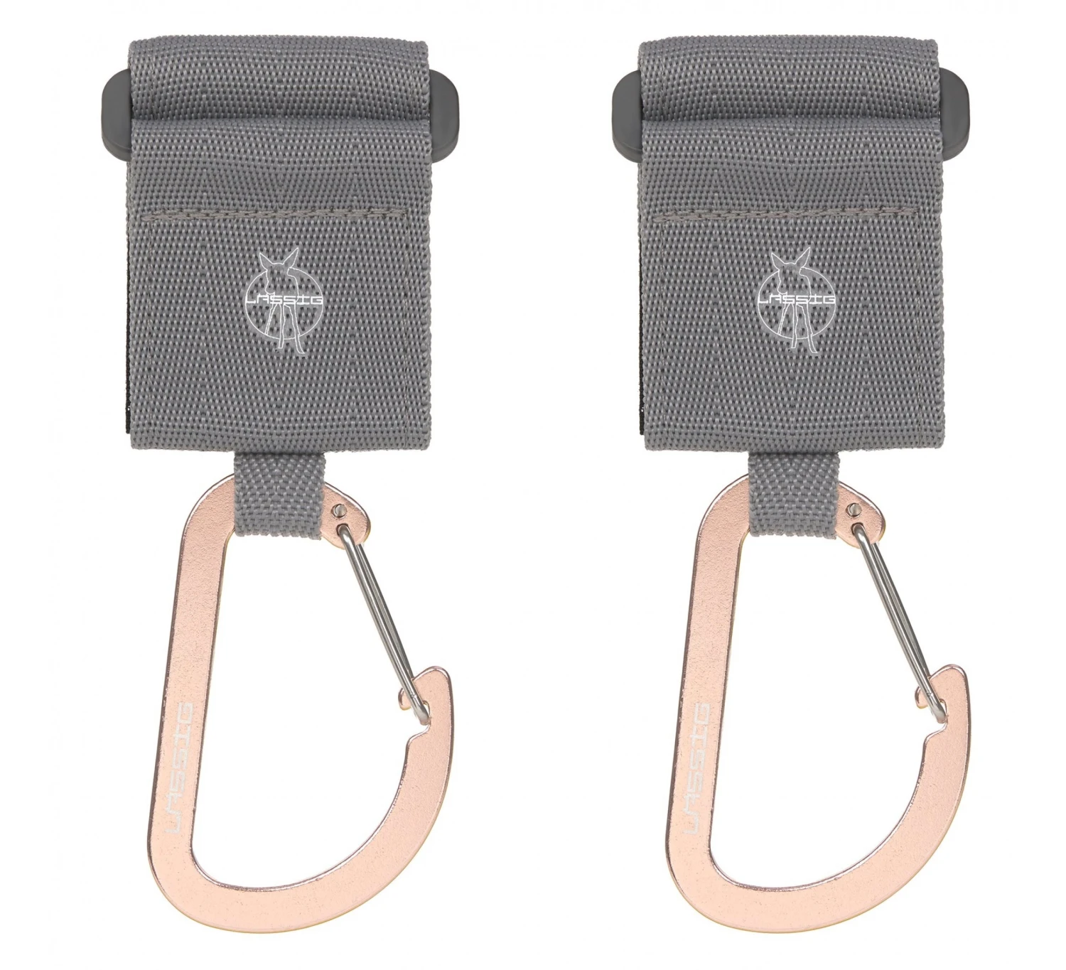 Deze handige tassen haken zijn van het merk Lassig. Je kunt de haken gebruiken voor aan de buggy om bijvoorbeeld de luiertas of je eigen tas aan de hangen. Zo is je tas altijd makkelijk bij de hand en weet je zeker dat je hem niet zomaar kwijt kan raken. De haken passen niet alleen op een buggy, maar ook op bijvoorbeeld een kinderwagen of fietskar. De set bestaat uit 2 haken.