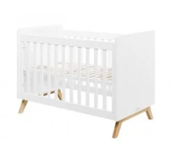 Dit moderne en eigentijdse ledikant van Bopita komt uit de serie Fenna. Het bed is wit en heeft een blank gelakt houten onderstel. De bedbodem is verstelbaar in hoogte. Zodra je baby zichzelf kan optrekken kun je de bodem verlagen voor extra veiligheid. Combineer dit ledikant met de andere meubels uit de Fenna serie.