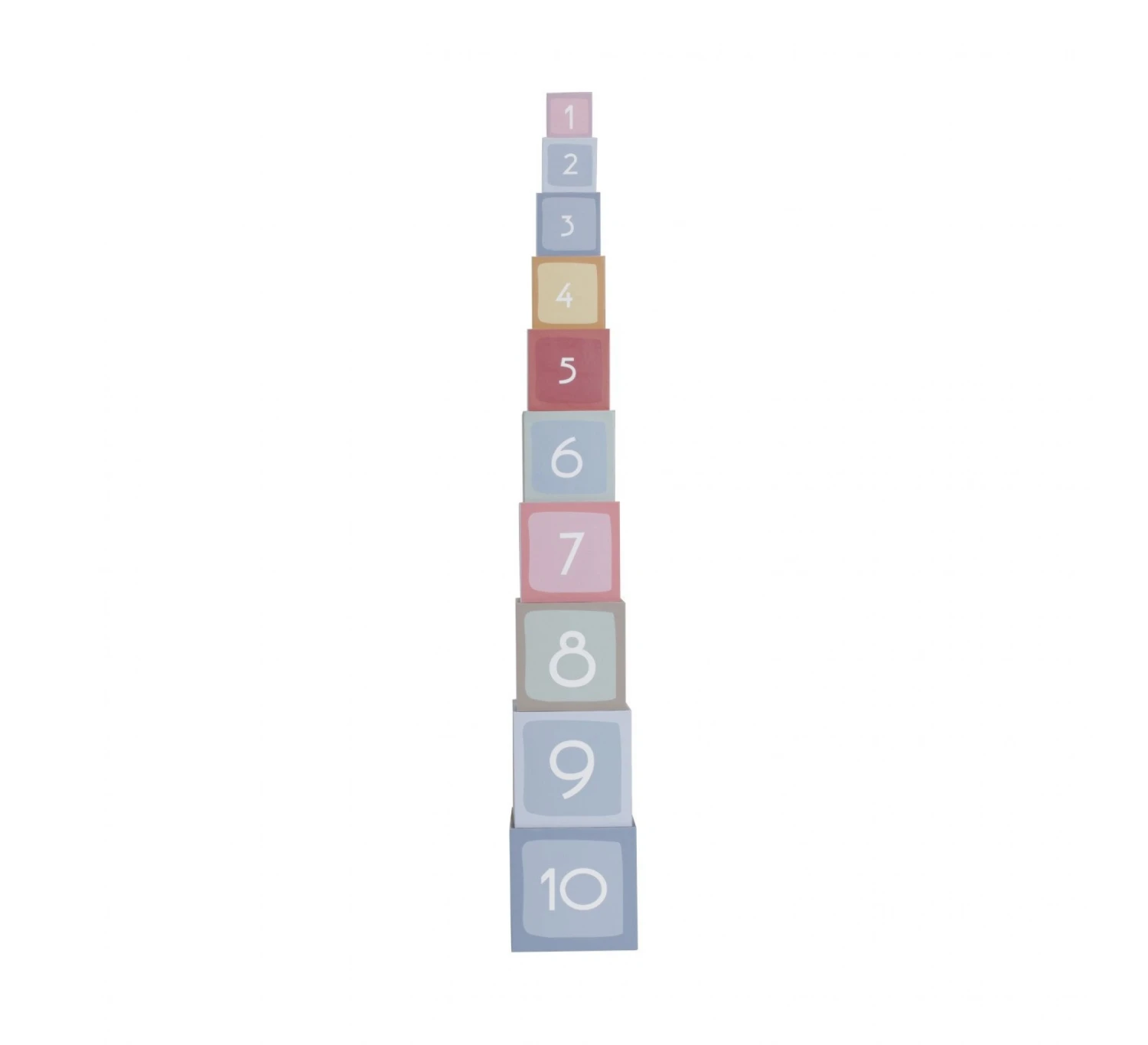 Kinderen leren spelenderwijs tot 10 te tellen met deze blokkentoren. De blokken zijn geïllustreerd met de herkenbare Gans en al zijn vriendjes die rond de vijver op het platteland wonen.Je kunt de blokken op elkaar zetten en een hoge toren maken of horizontaal op de grond leggen om de verschillende groottes te ontdekken.