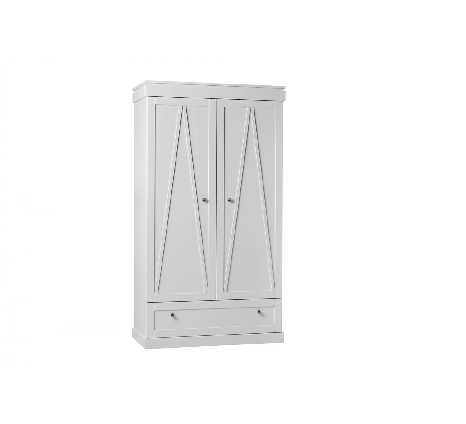 Deze Pinio Marie 2-deurskast beschikt over een speelse uitstraling en biedt voldoende opbergruimte voor al je babykleertjes. De kast beschikt over twee deuren en een lade aan de onderkant. Achter de deuren bevindt zich voldoende opbergruimte, waaronder diverse vakken om kleding in op te bergen en twee hangroedes. De ruime lade aan de onderkant voorziet je van nóg meer opbergruimte. Combineer deze 2-deurskast met de andere meubelen uit de Pinio Marie collectie voor een speelse en uniforme uitstraling.