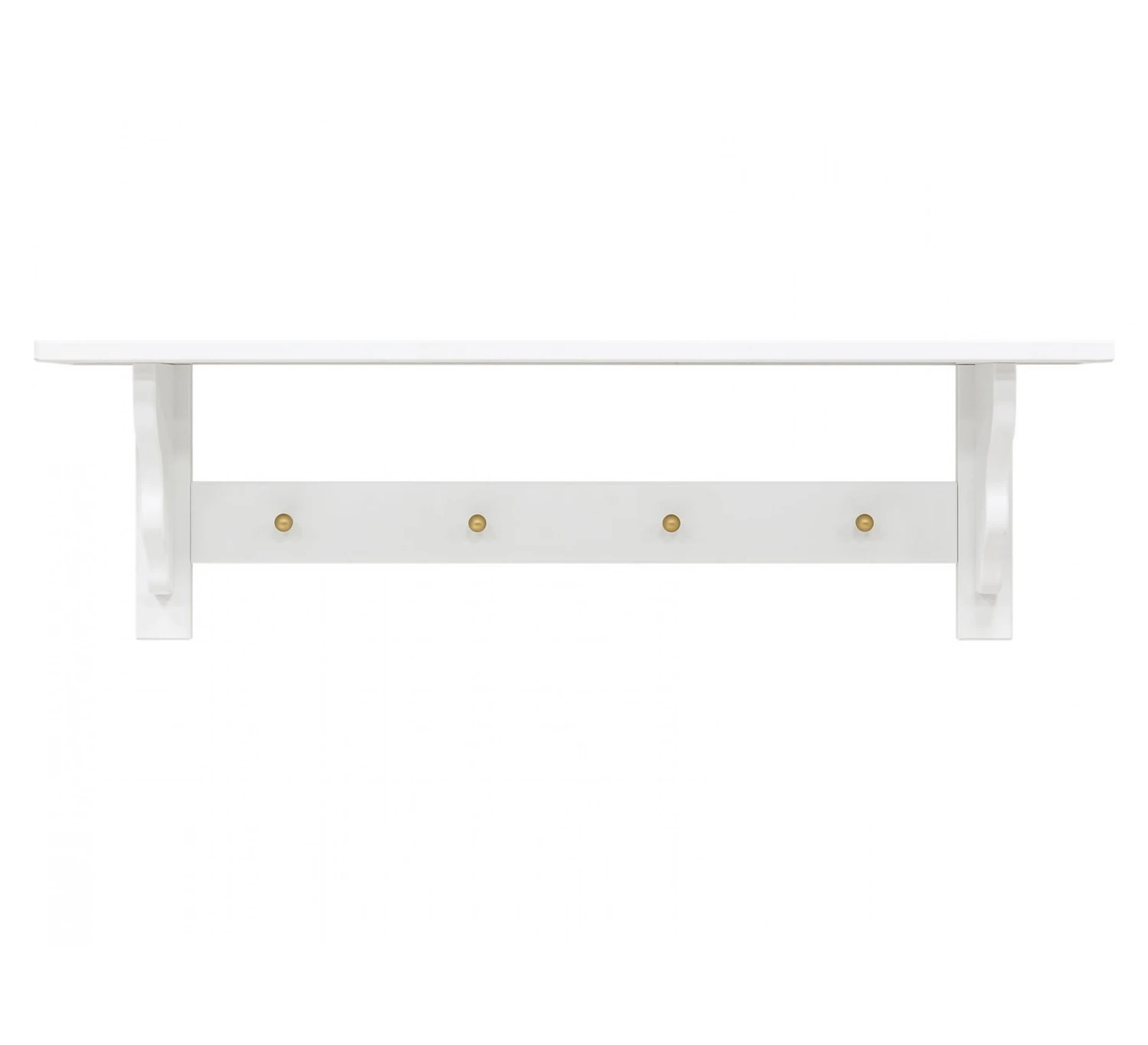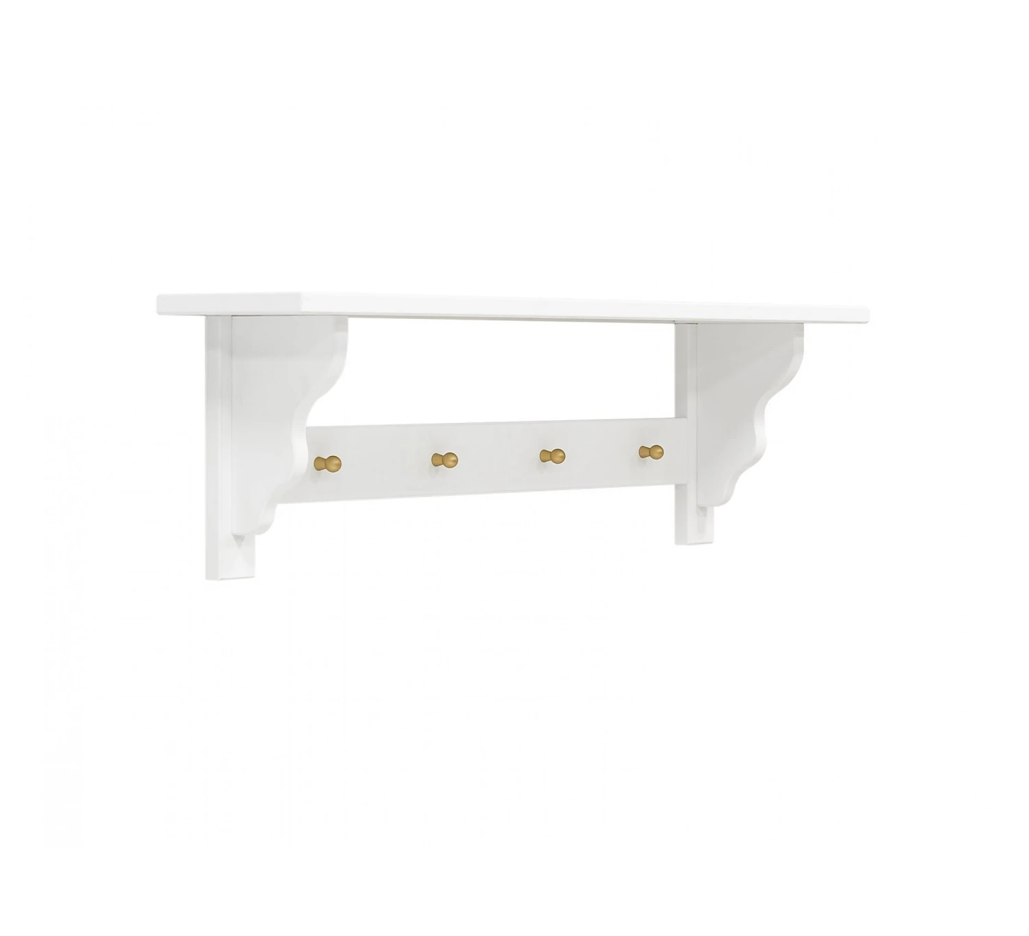 Maak je babykamer helemaal af met dit mooie wandrek Elena van Bopita. Het wandrek is afgewerkt met witte lak op waterbasis en is ideaal voor boven de commode. Je kunt er benodigdheden of accessoires op kwijt, zodat je deze in de buurt hebt tijdens het verschonen van je kindje. Het wandrek is voorzien van vier matte, goudkleurige knoppen. Dit wandrek is eenvoudig aan de muur te bevestigen. Schroeven zijn niet inbegrepen.