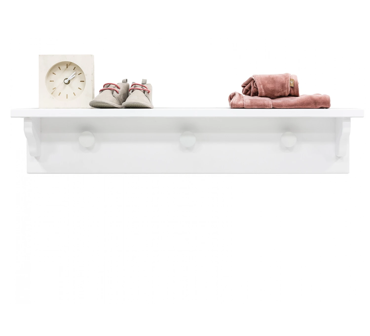 Het wandrek Evi van Bopita is boven de commode te plaatsen om benodigdheden of accessoires in de buurt te hebben. Altijd handig tijdens het verschonen. Dit wandrek is voorzien van drie knopppen waar je eenvoudig een speenkoord of een rompertje aan op kunt hangen. Het wandrek is aan de muur te bevestigen en wordt geleverd exclusief de schroeven.
